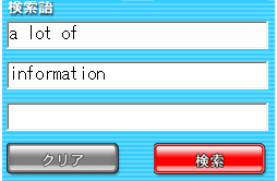 日本語のAND検索は、スペースでつないだりせず、必ずボックスに1つずつ入力してください。 |
